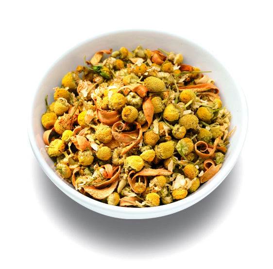 Fruity Camomile - нежная и благотворная ромашка смешана с апельсиновыми цветами, что придает напитку нежный цветочный аромат. Состав: цветки ромашки, цедра апельсина (5%).